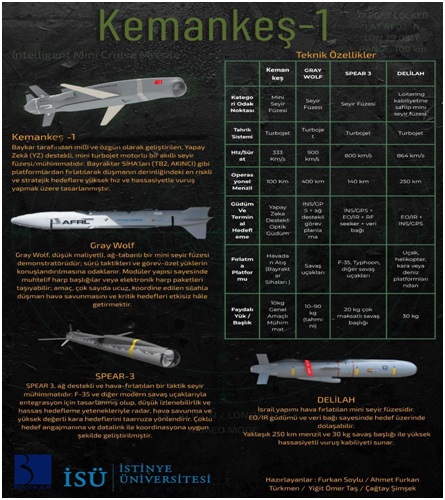 - İngiliz SPEAR 3 ile Kullanım Farkı (Platform Bağımlılığı): İngiliz MBDA üretimi SPEAR 3, 140 km menziliyle güçlü bir rakip olsa da F-35 ve Typhoon gibi çok yüksek maliyetli uçaklara bağımlı bir sistemdir. Ayrıca hedef tespiti için sürekli bir veri ağına ve GPS verisine ihtiyaç duyar. Buna karşın KEMANKEŞ-1, Bayraktar TB2 gibi daha erişilebilir SİHA’lardan atılabilir ve yapay zekâlı kamerasıyla hedefi görerek bulur. İngiliz rakibi “veriye”, KEMANKEŞ ise “görüntüye” güvenir.
